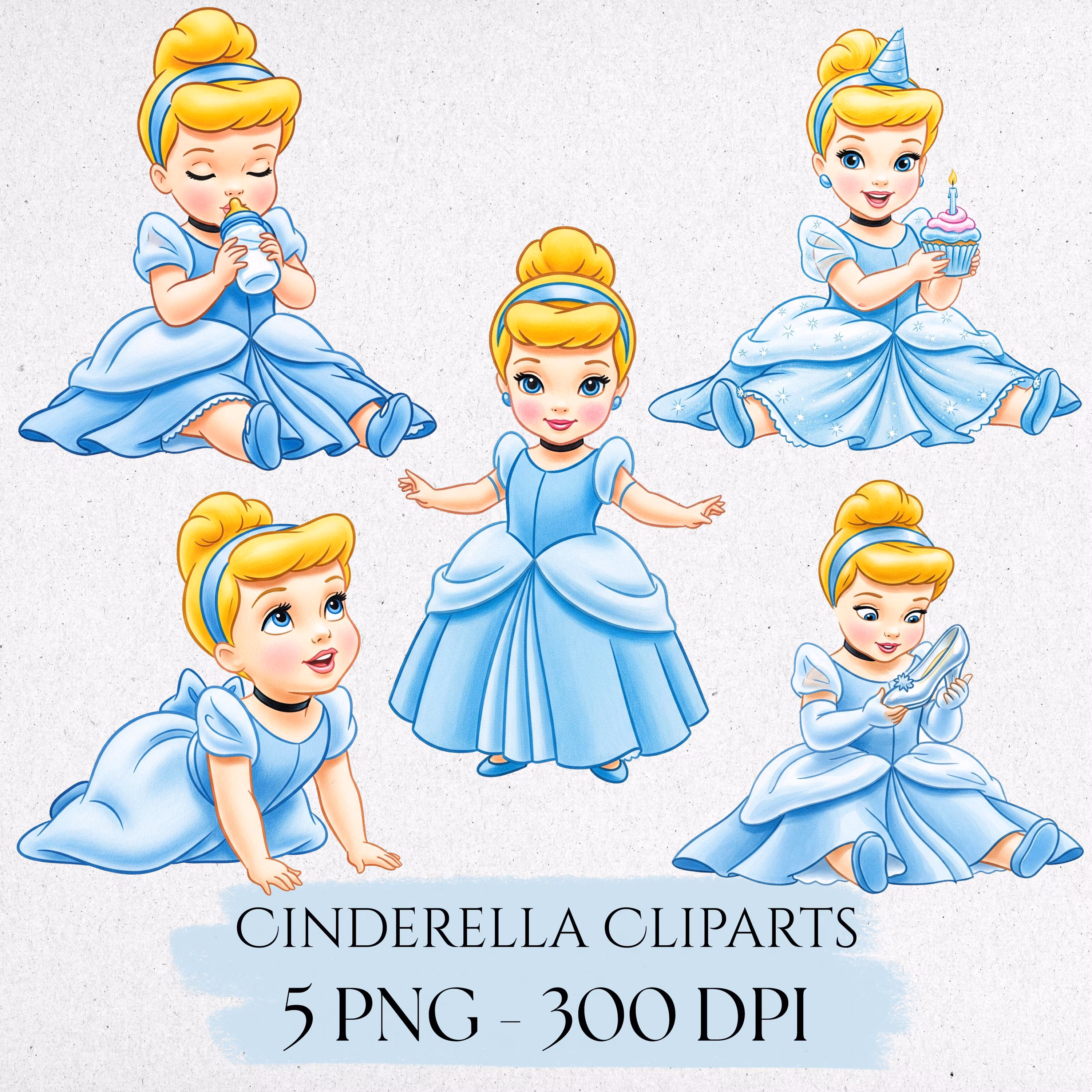 Baby Cinderella Watercolor Clipart - Glass Slipper Character PNG Bundle for Royal Nursery Decor