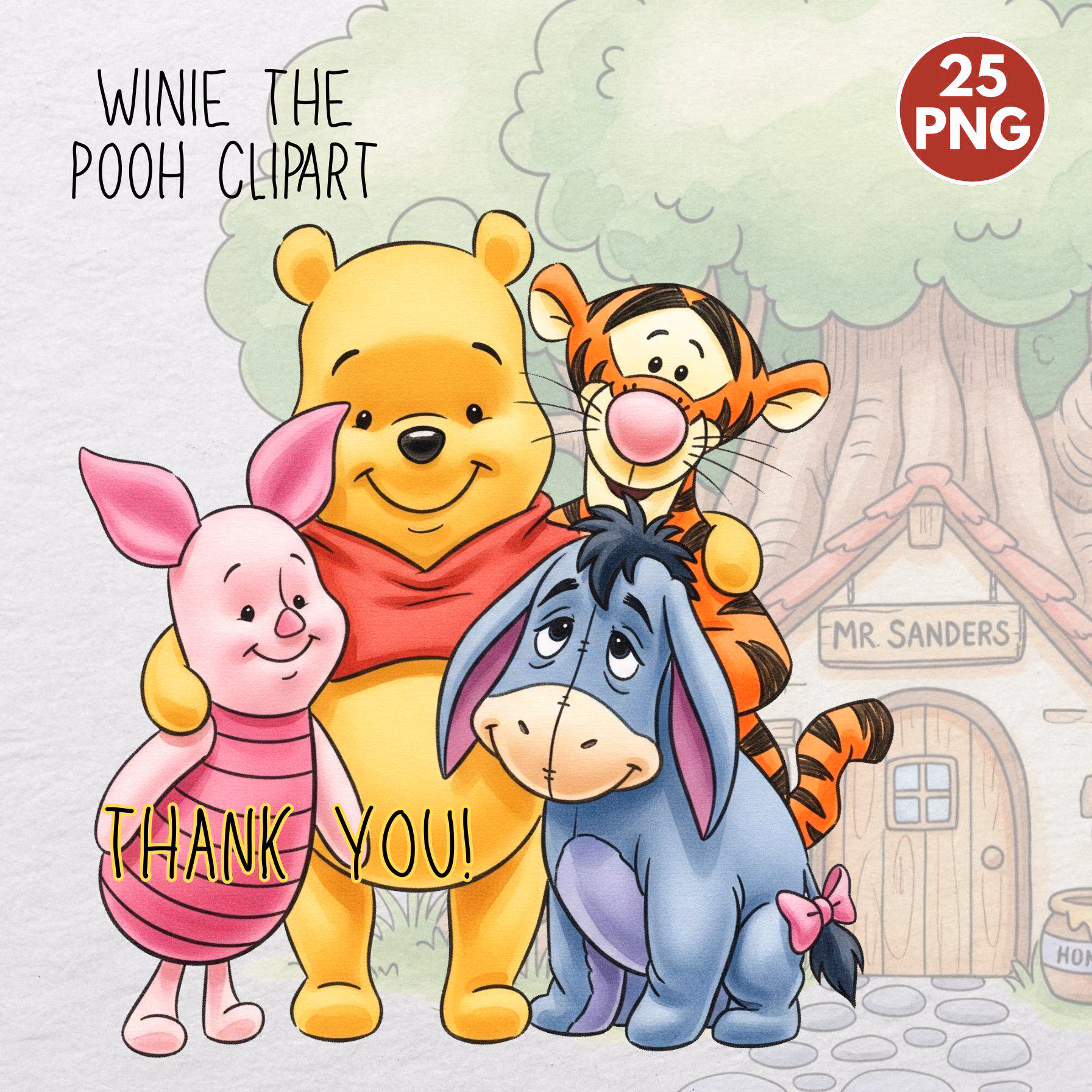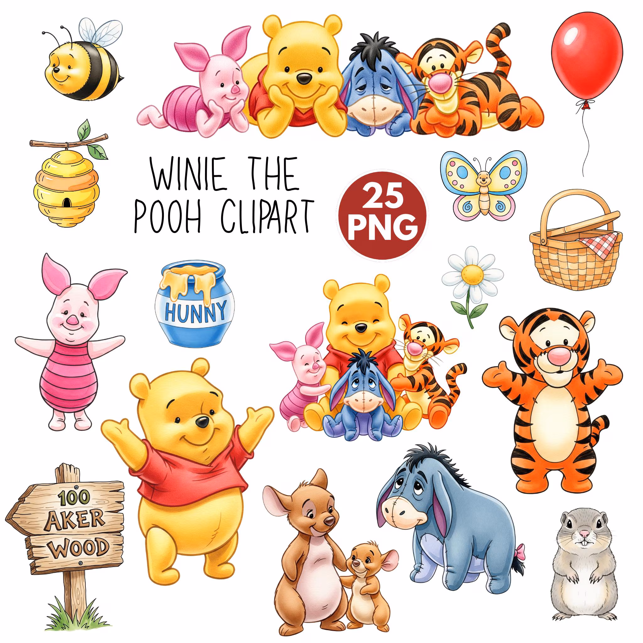 Classic Winnie the Pooh Watercolor Clipart - Hundred Acre Wood Character Bundle for Nursery Decor