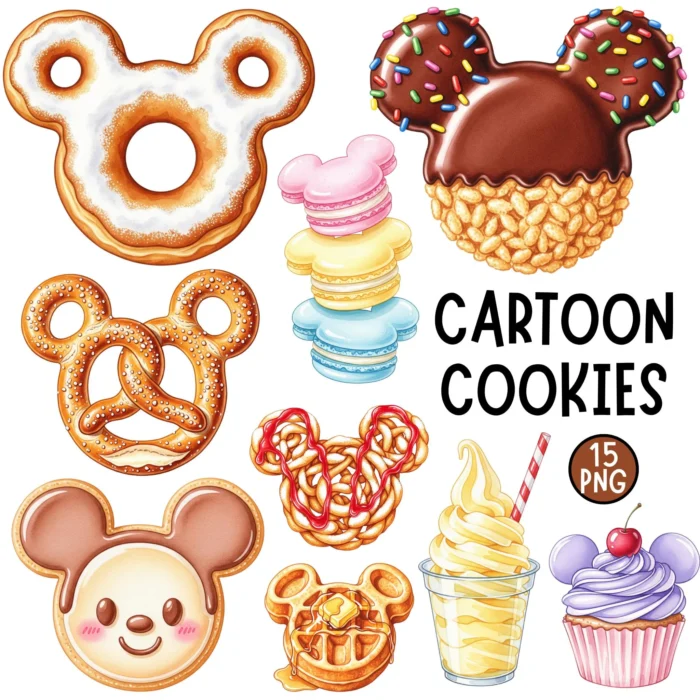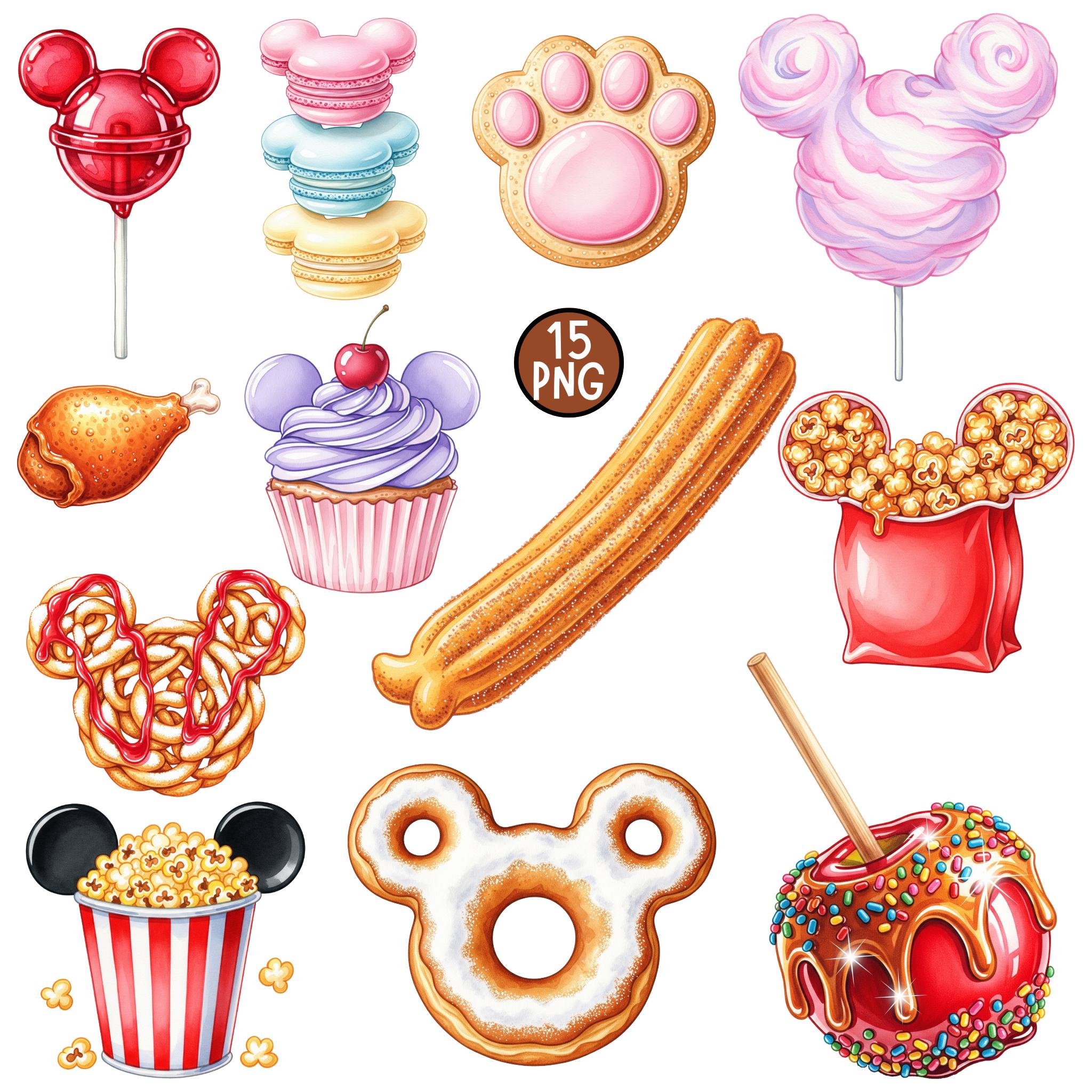 Disney Snack Clipart | 15 PNG Files | Mickey Ears Treats | Cute Park Snacks | Birthday Party Food Art | Printable Cliparts