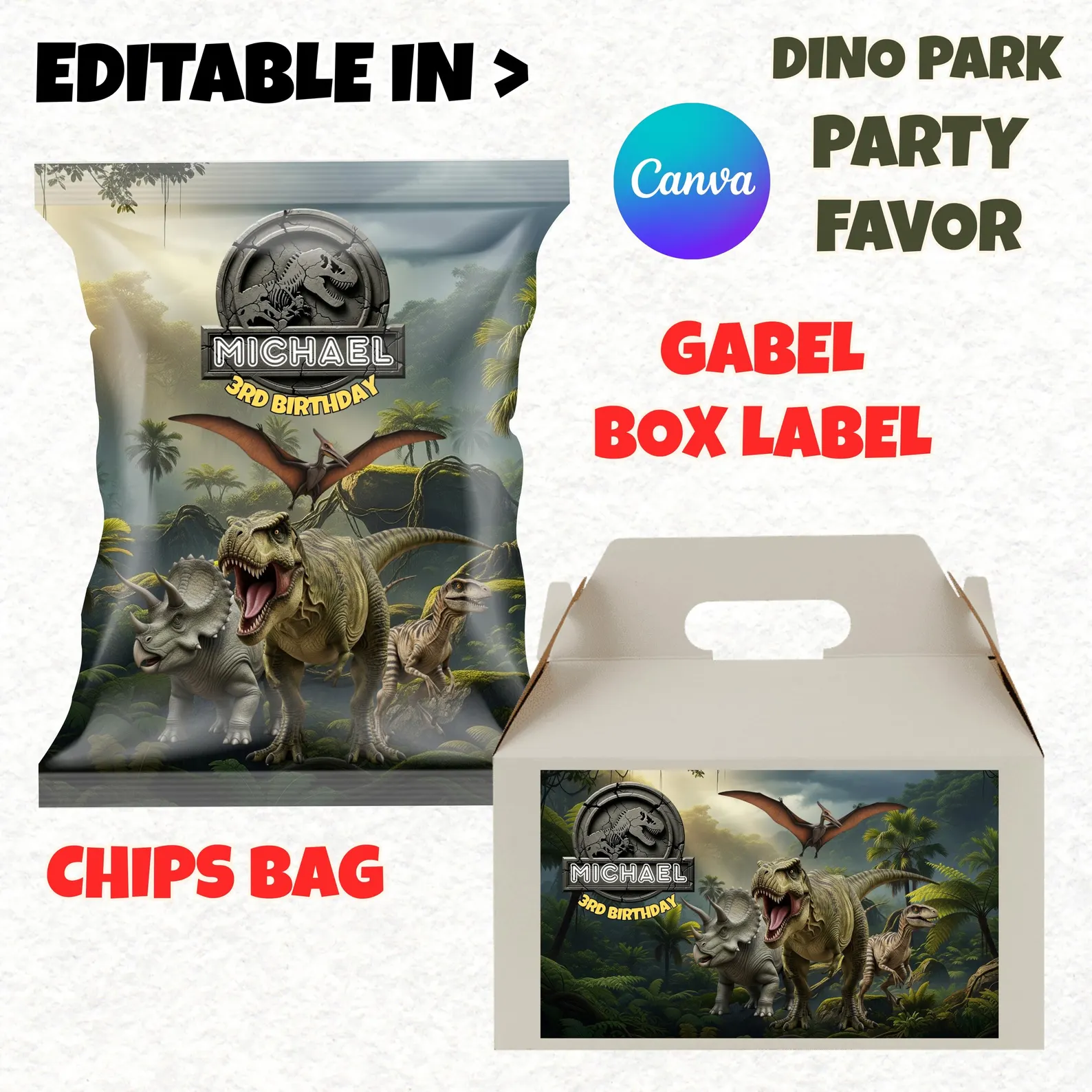 Jurassic Park Birthday Party Favor Bundle, Dinosaur Printable Labels, Editable Dino Party Adorable Kit, Jurassic Park Chips Bag and More