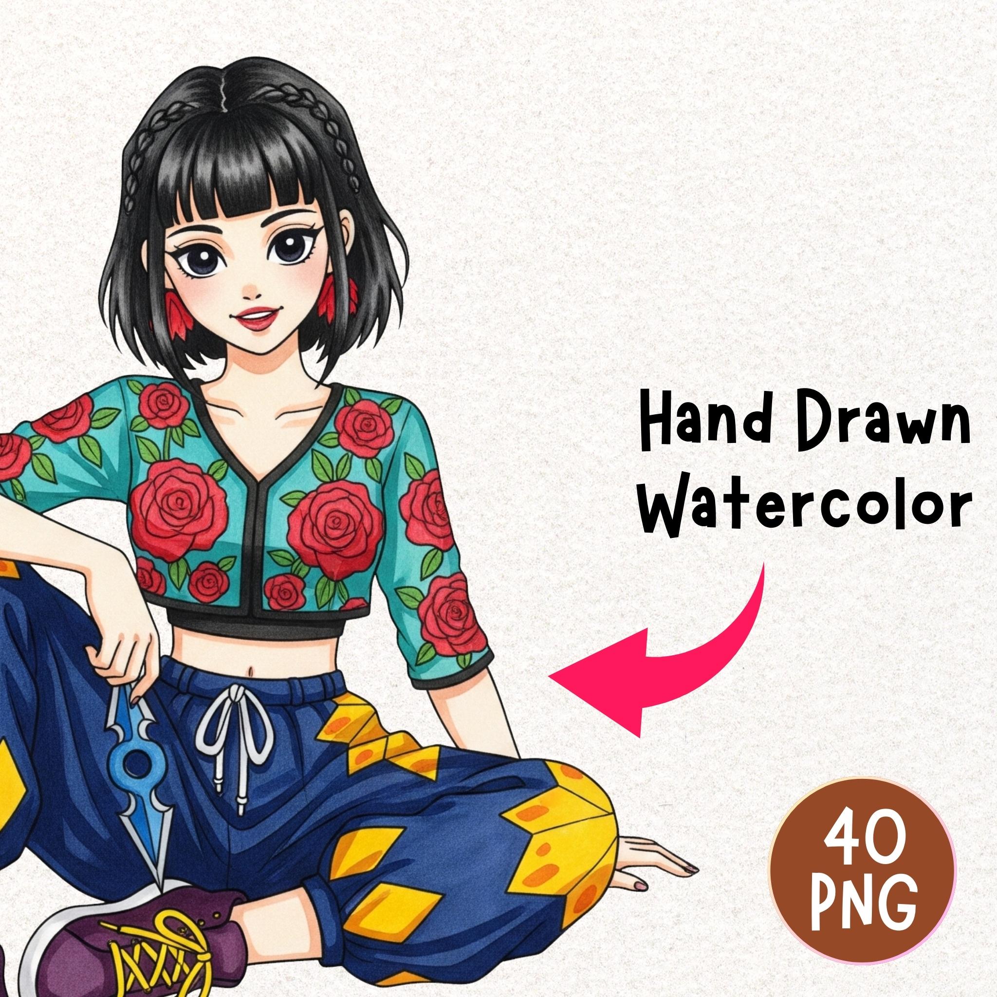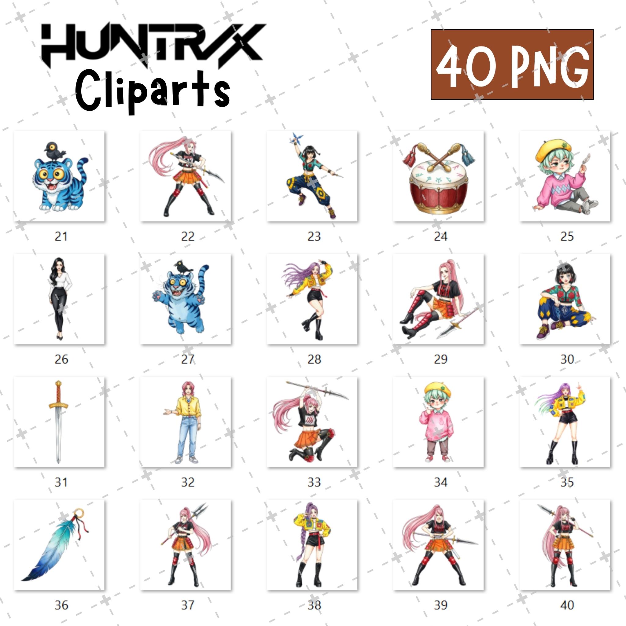 Kpop Demon Hunter Clipart 40 PNG Watercolor Clipart, Hun-trix PNG, Girl Dinner Png, Cat And Bird Png, Sa-ja Girls PNG, Sa-ja Boys Png, Adorable Hunter Merch