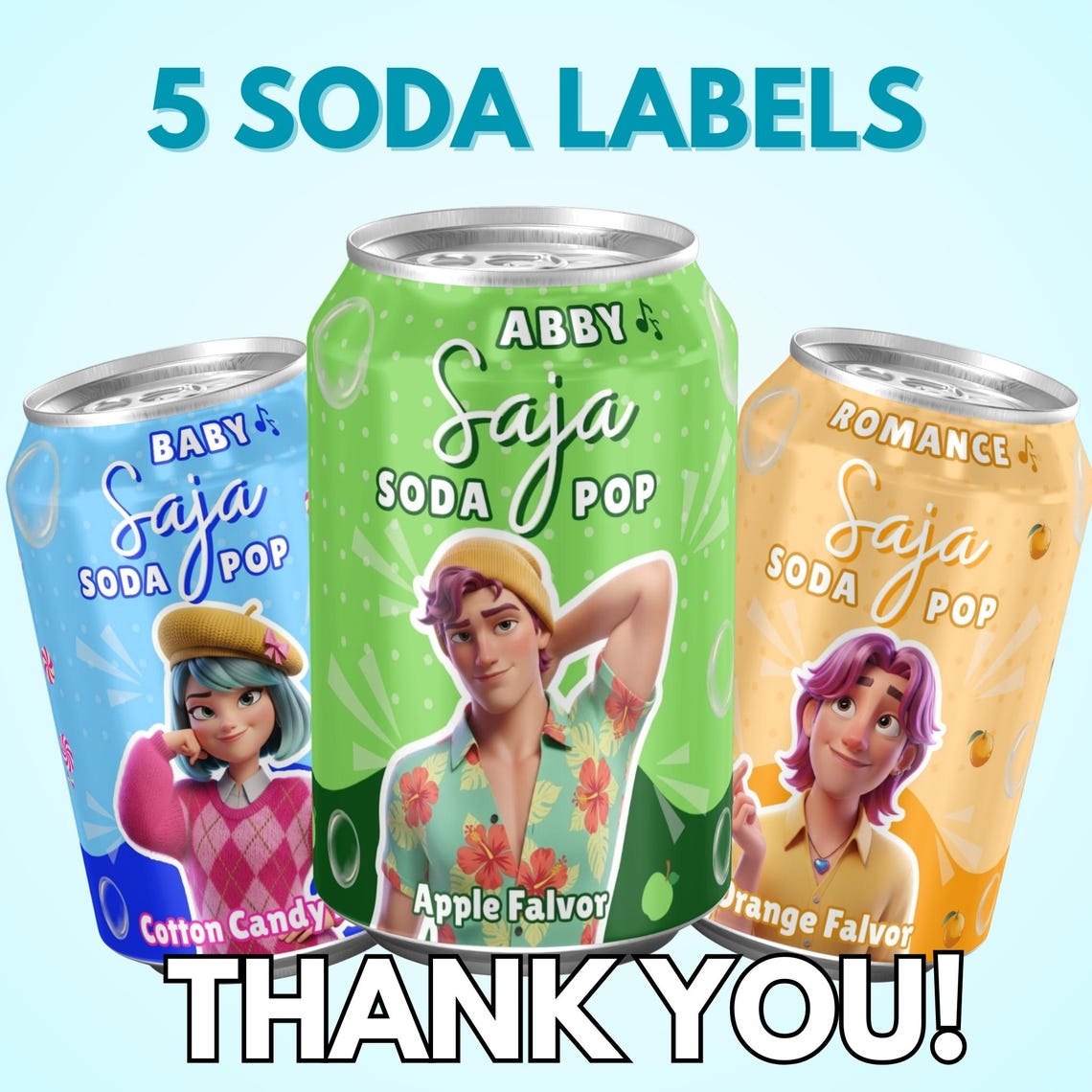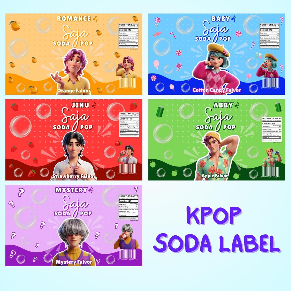 Editable Kpop Demon Hunters Soda Can Labels, Kpop Demon Hunters Label, Saja Boys Soda Pop Can Labels, Jinu Baby Abby Saja Huntrix, Adorable Kpop Party Printable, 5 Saja Boys Soda Can Wrappers