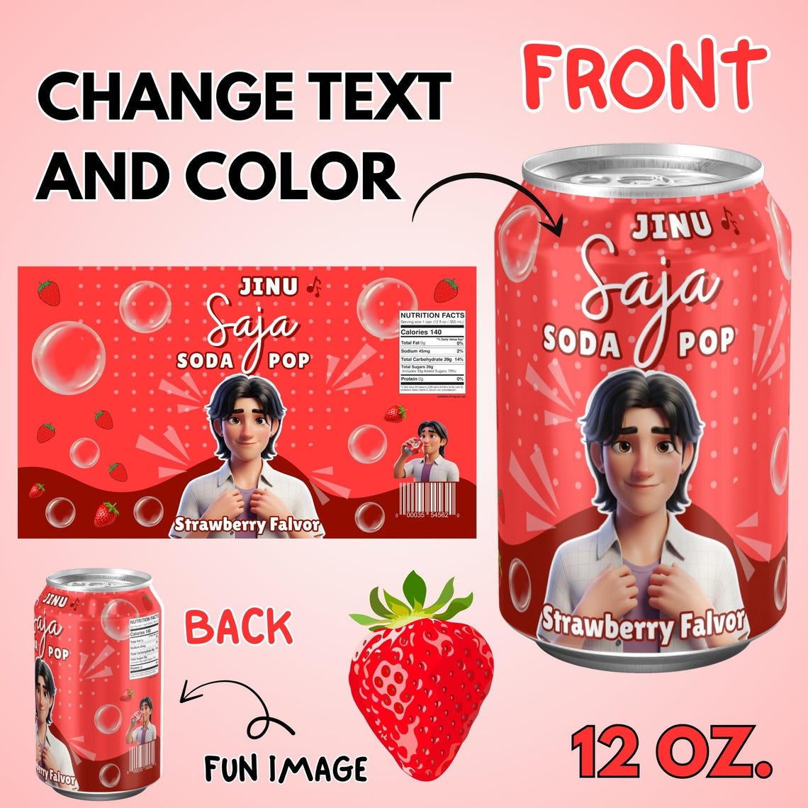 ✅ 5 Editable Canva Templates Kpop Demon Hunters Soda Can Labels