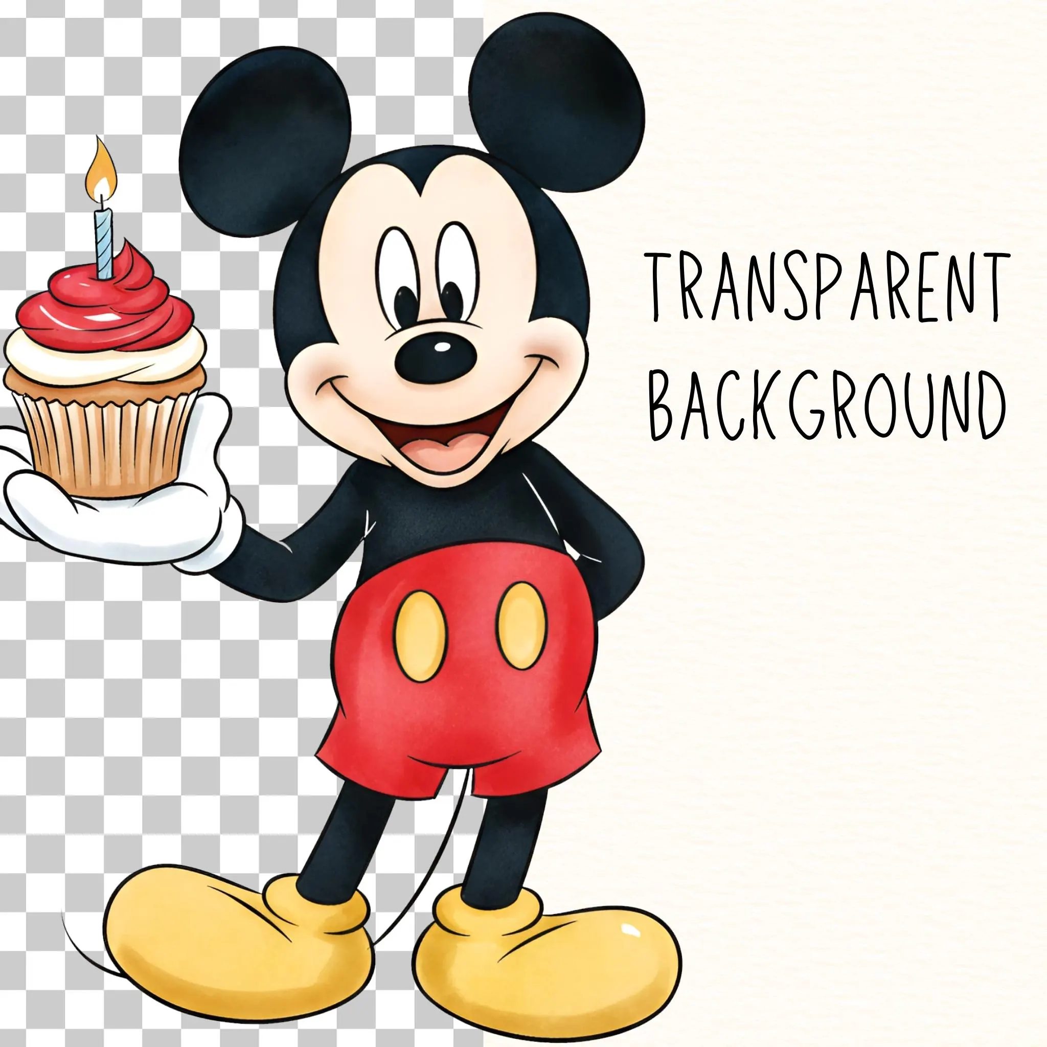 Mickey Mouse Birthday Clipart, Watercolor Mickey PNG, Beautiful Mickey PNG, Mickey Mouse Party Decor, Mickey Cake Topper, Mickey Birthday Theme Party