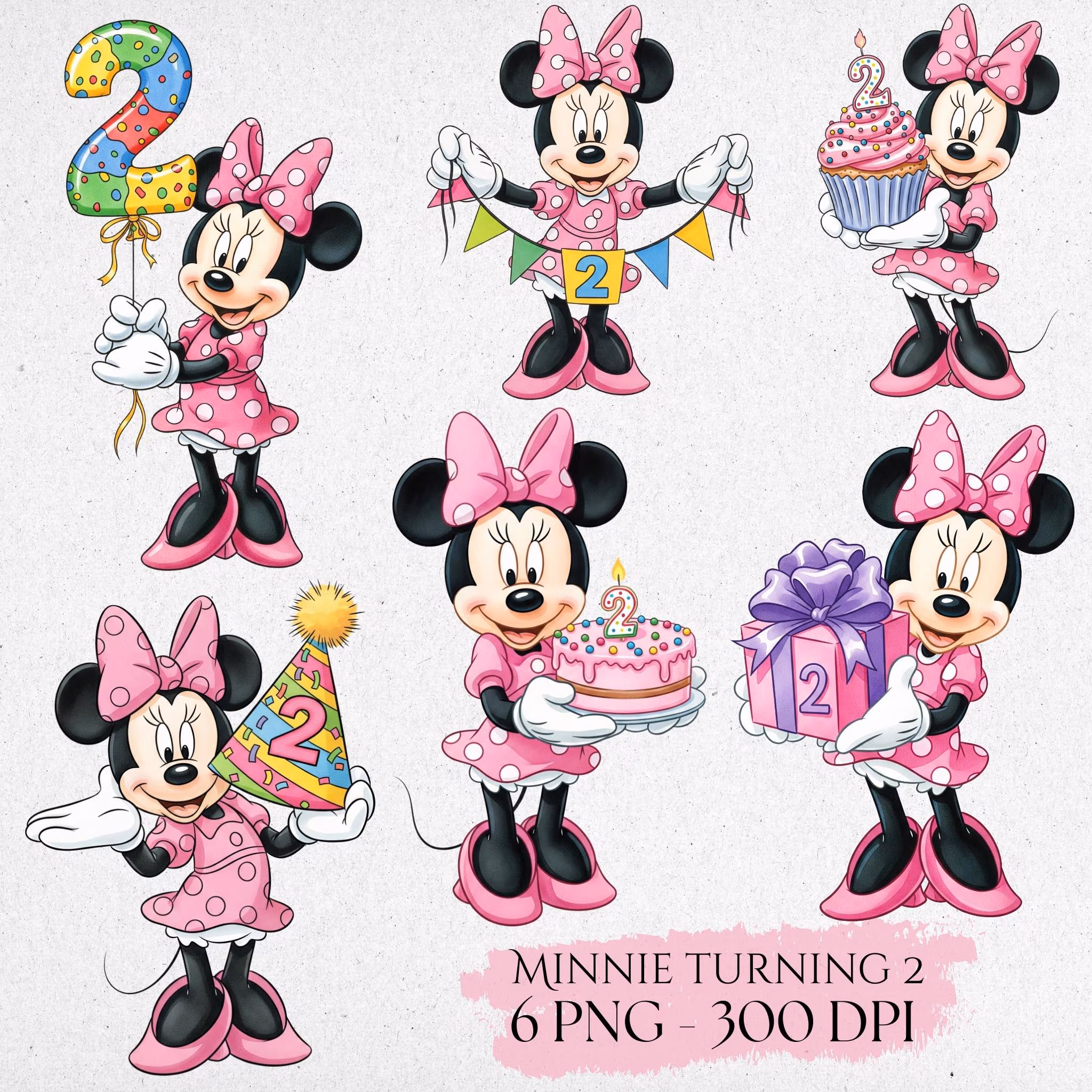 Minnie Mouse 2nd Birthday Watercolor Clipart Collection | Baby Shower & Two Year Old Theme | High-Quality PNG Bundle for Birthday, Nursery, Invitations & Crafts