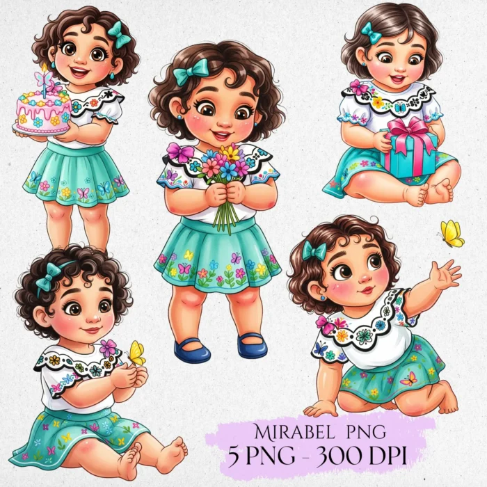 Mirabel Madrigal Watercolor Clipart - Mirabel and Isabela PNG for Colombian Floral Theme Decor
