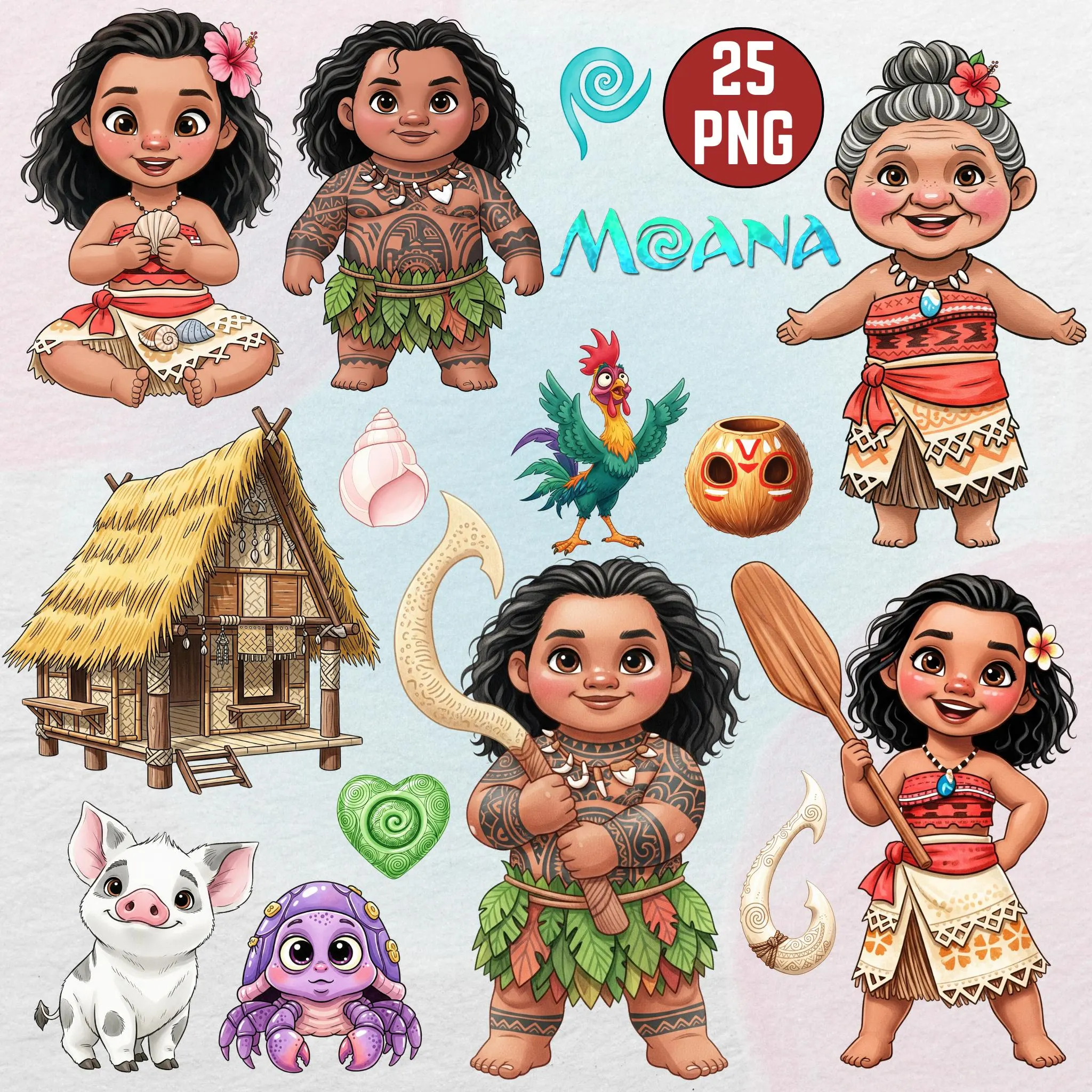 Moana Watercolor Clipart - 25+ High-Resolution PNGs