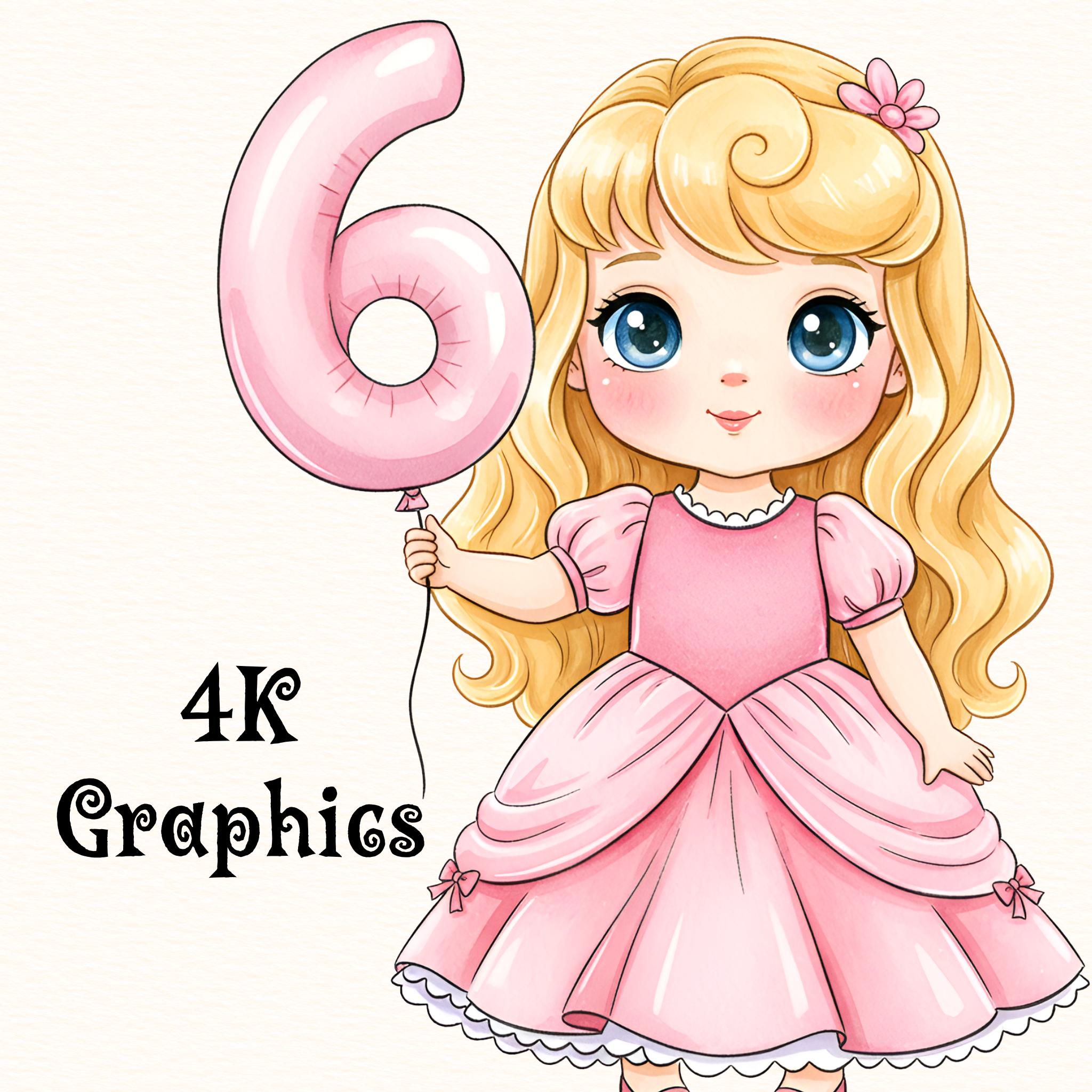 💗 Watercolor Princess Aurora holding number balloons (1–10)