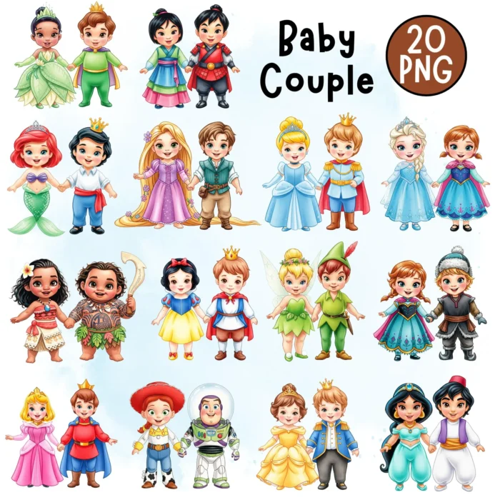 Princess Prince Couple Clipart Collection | Hand Drawn Storybook Characters | High-Quality PNG Bundle for Baby Shower, Nursery, Invitations & Crafts