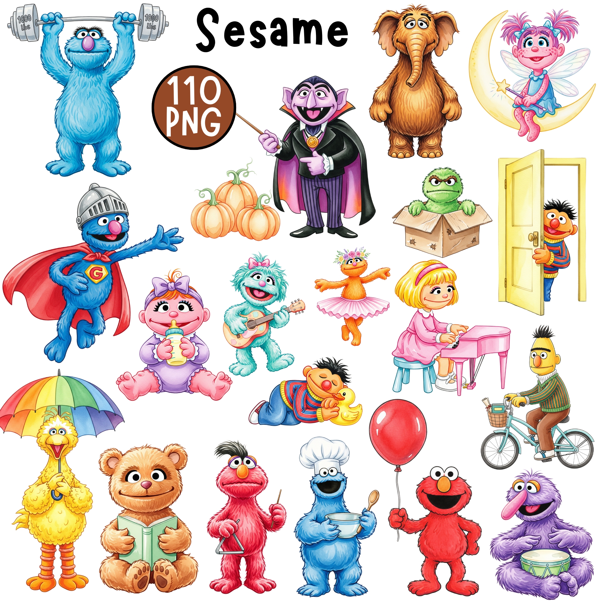 ✨ Sesame Street Cliparts Mega Bundle | 110 PNG | Elmo, Cookie Monster, Big Bird & Friends | Monsters Birthday Party Art