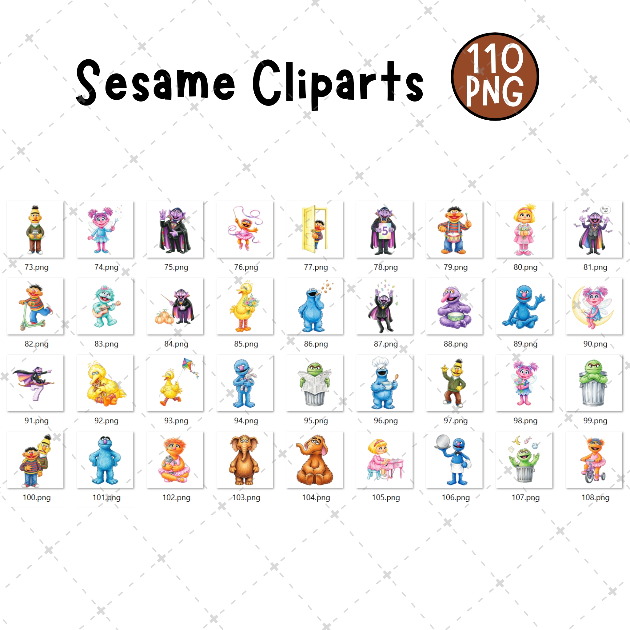 Sesame Street Cliparts 110 PNG Bundle, Street Monsters Characters, Cookie Monster, Big Bird, Monsters Birthday, Elmo and Friends Cliaprt PNG
