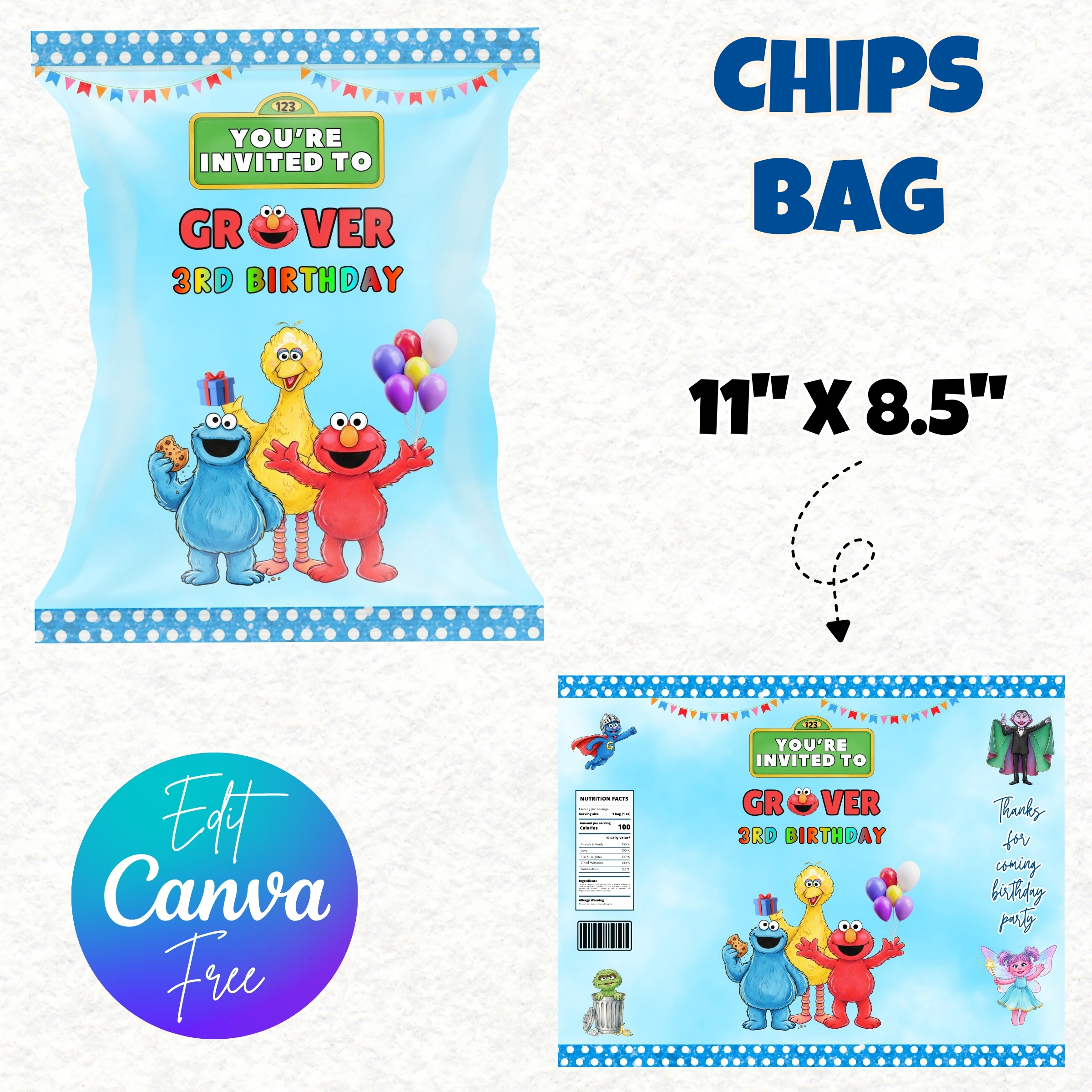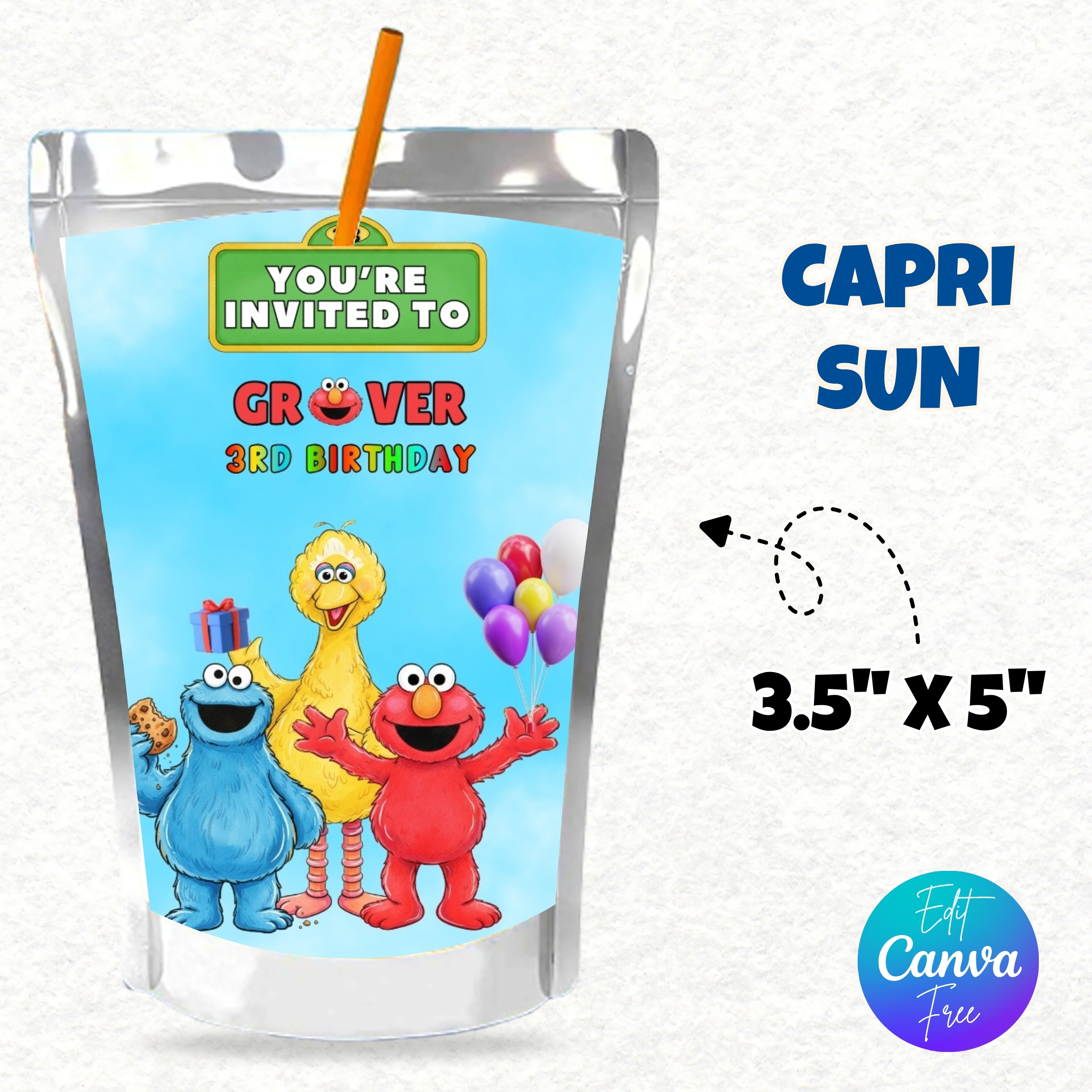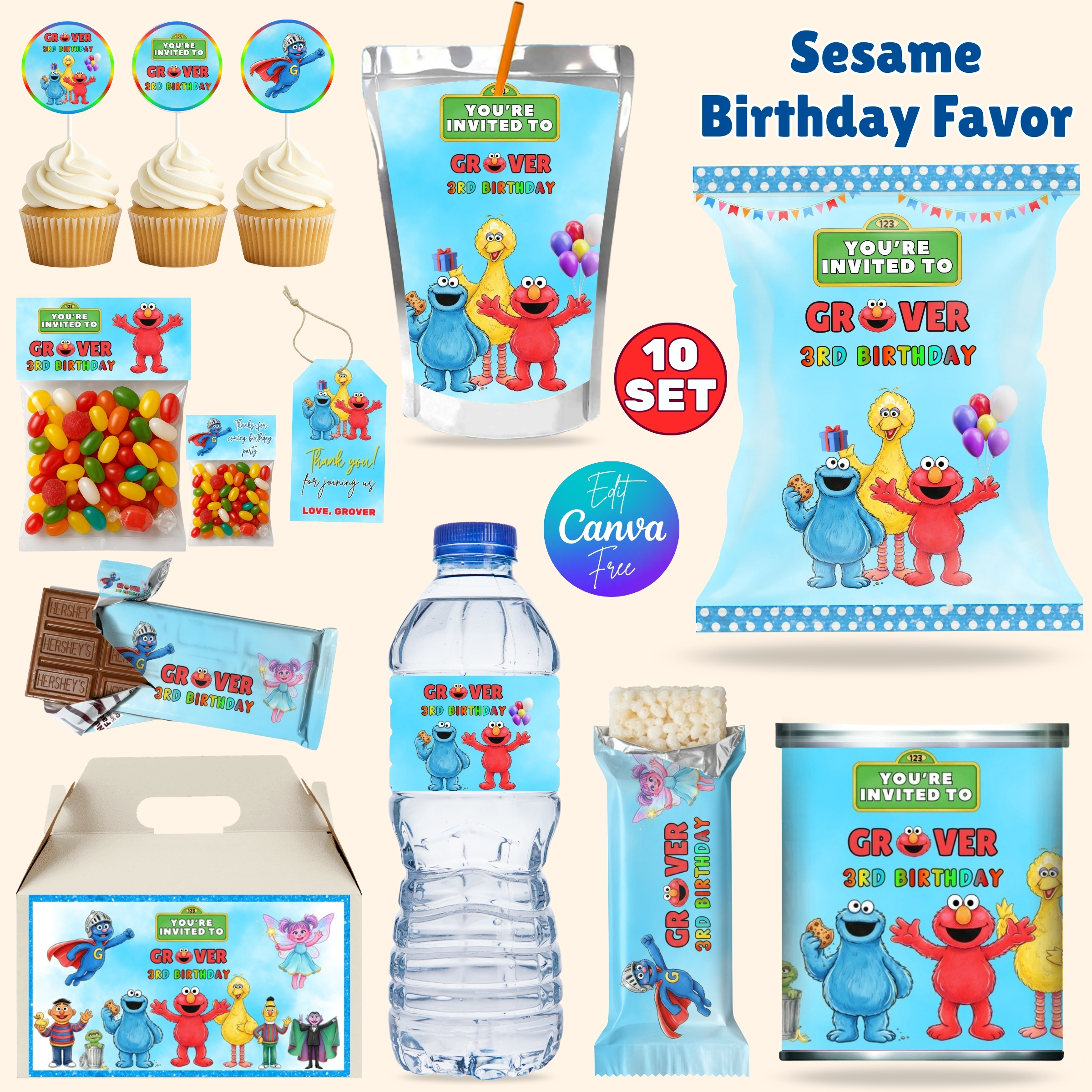 Sesame Street Party Favor π Elmo Birthday Printable Bundle π€© Chips Bag, Capri Sun Label, Bottle Wrapper, Editable Canva Kit, Sesame Birthday Decorations