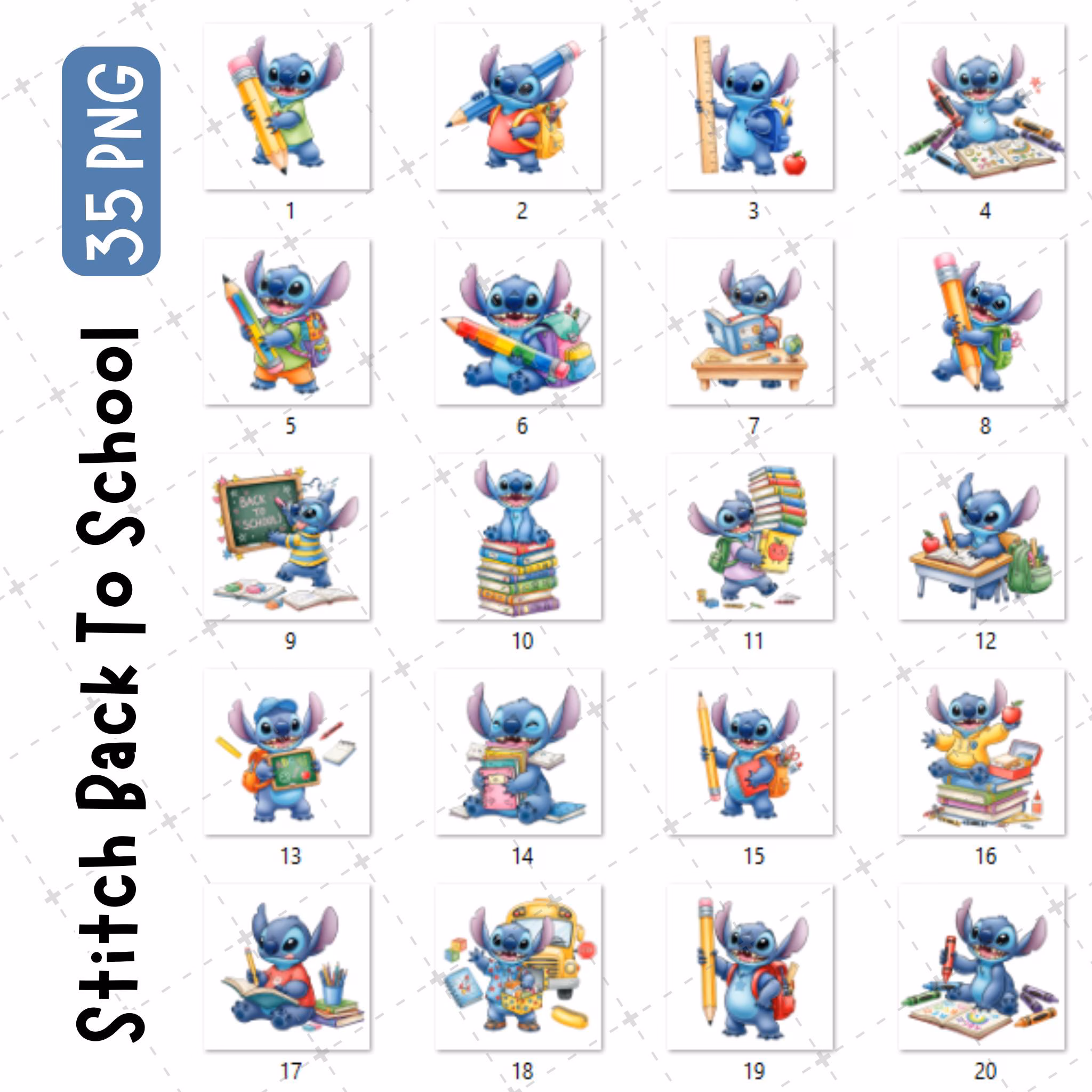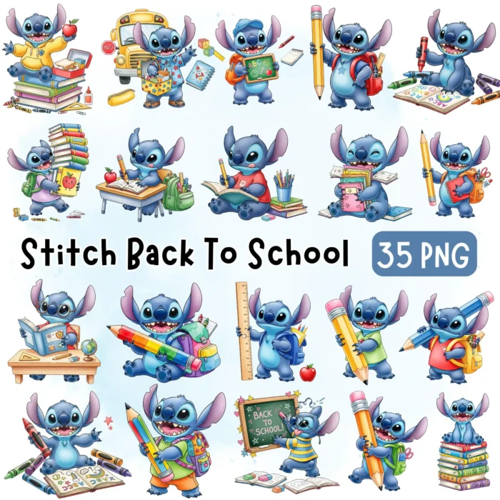 Stitch Back To School Watercolor Clipart Collection | Teacher & Classroom Theme | High-Quality PNG Bundle for Students, Nursery, Invitations & Crafts