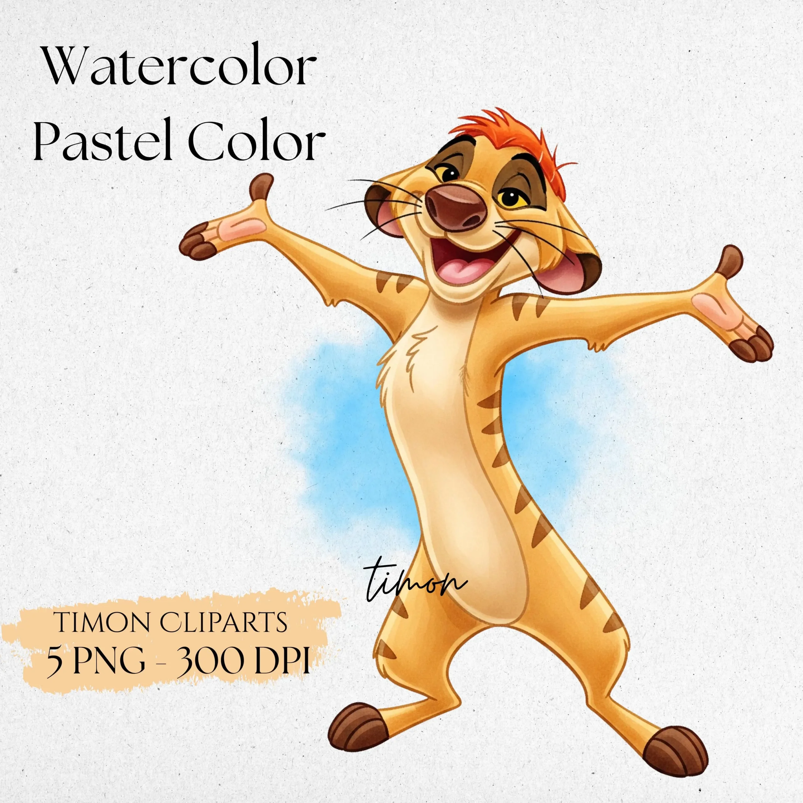 Timon Watercolor Clipart Collection | Lion King Meerkat & Safari Theme | High-Quality PNG Bundle for Birthday, Nursery & Crafts